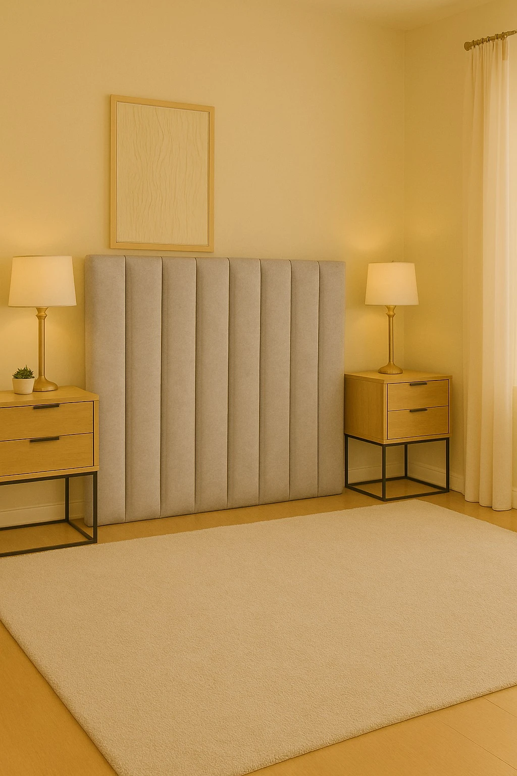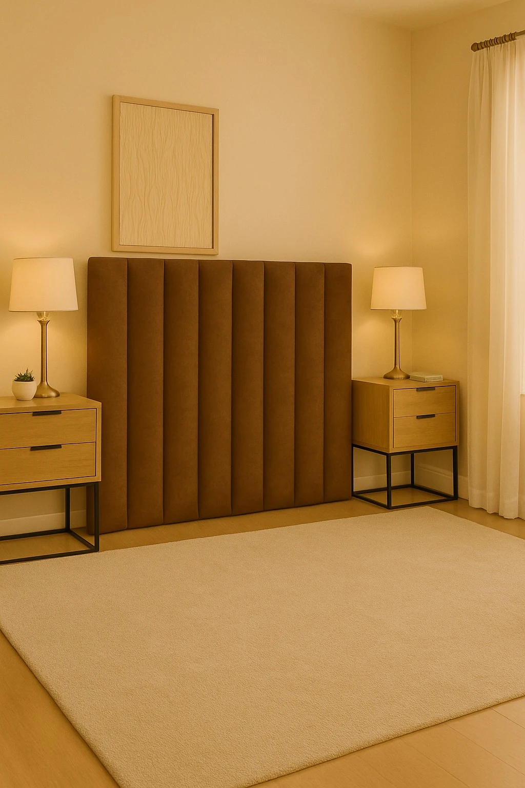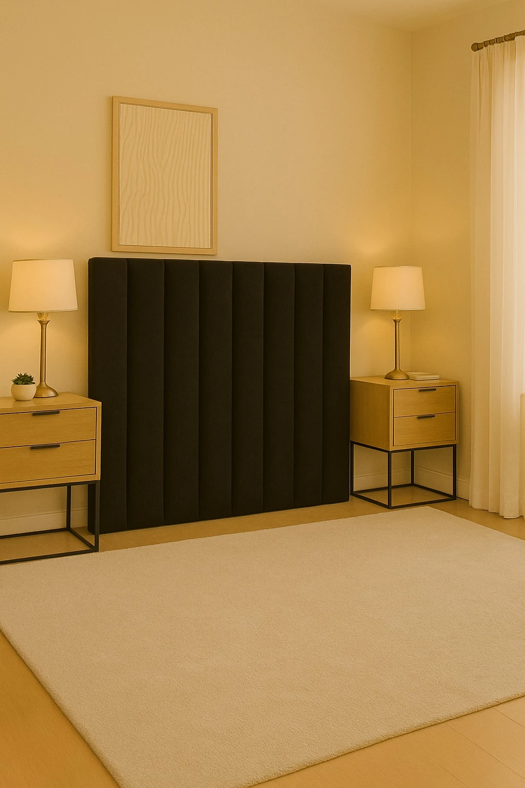 Una pieza que aporta elegancia, simetría y estilo contemporáneo al dormitorio.