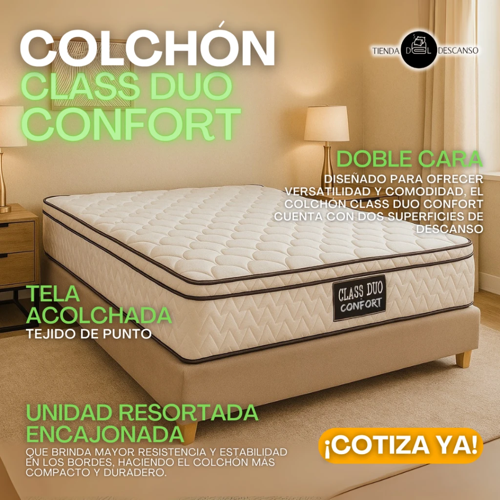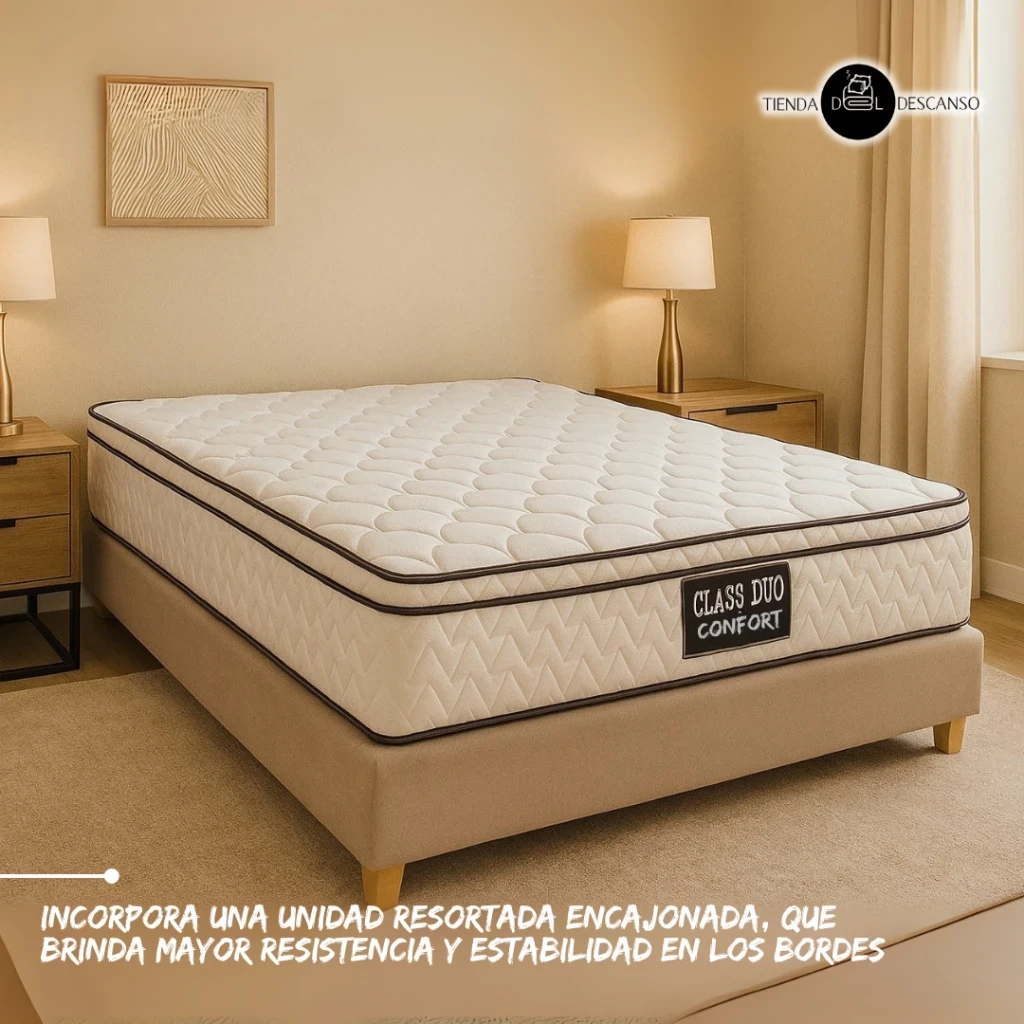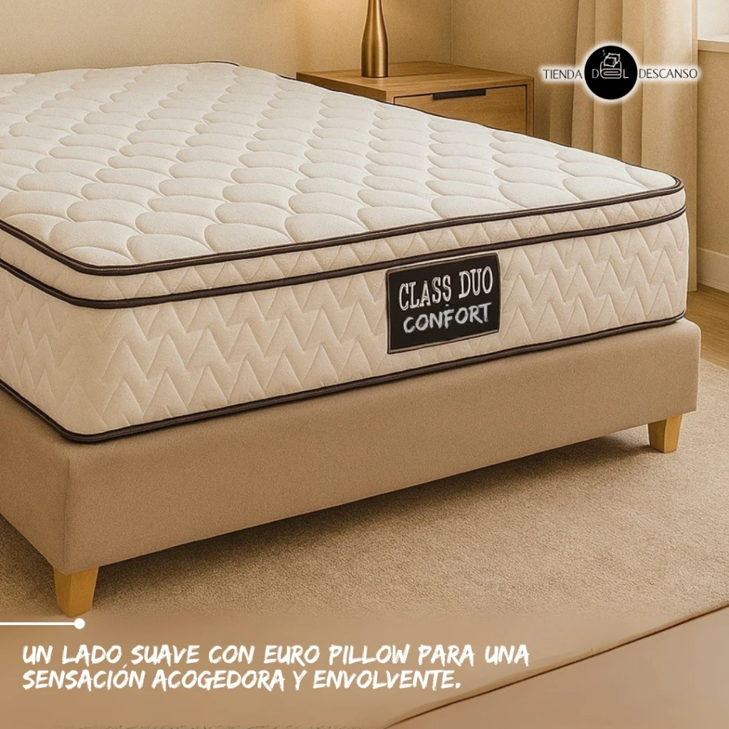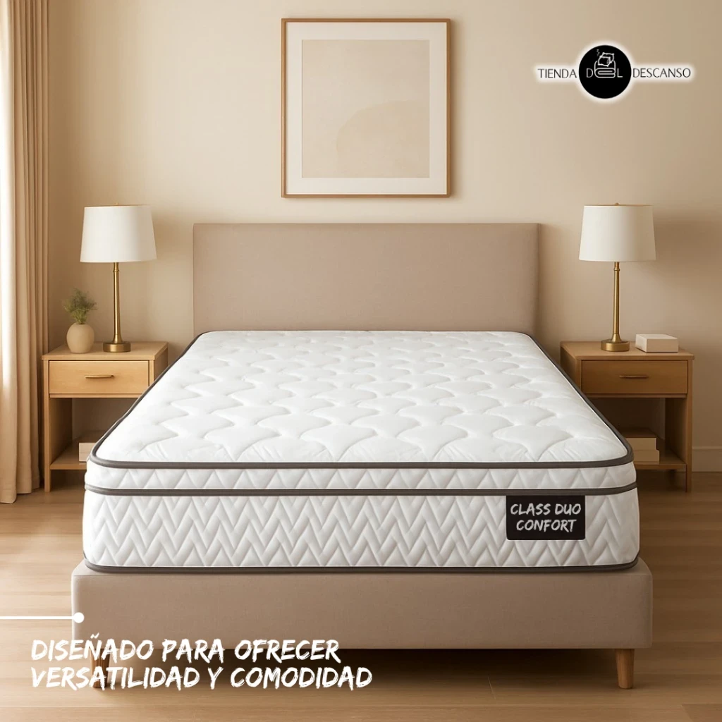 Diseñado para ofrecer versatilidad y comodidad, el colchón Class Duo Confort cuenta con dos superficies de descanso: